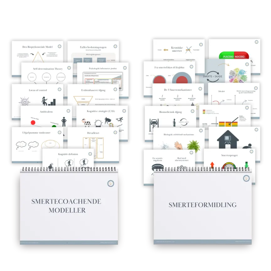 Du får udleveret en grundmanual, der dækker alt vedrørende den smertecoachende tilgang og model, samt en supplerende manual med værktøjer, spørgeteknikker og modeller.